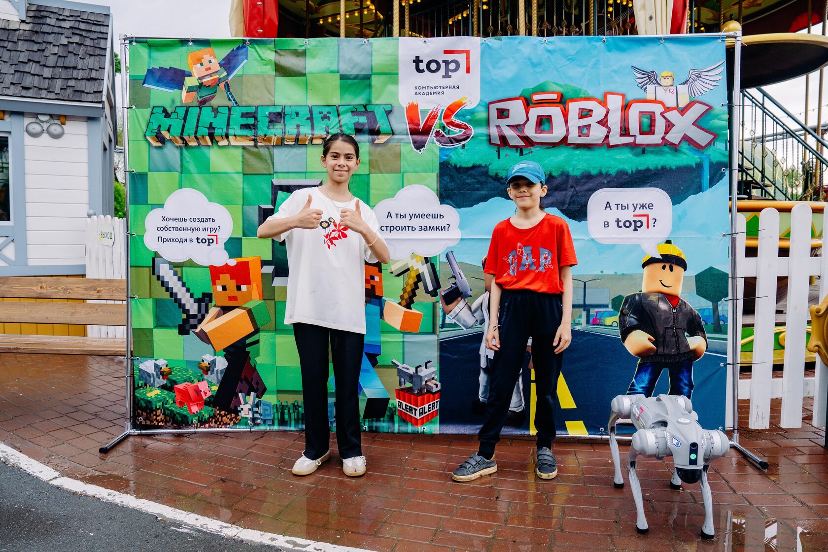 - Провели время с очаровательной нашей роботизированной собакой — ТОПОТУН, показавшей чудеса послушания и исполнения команд!